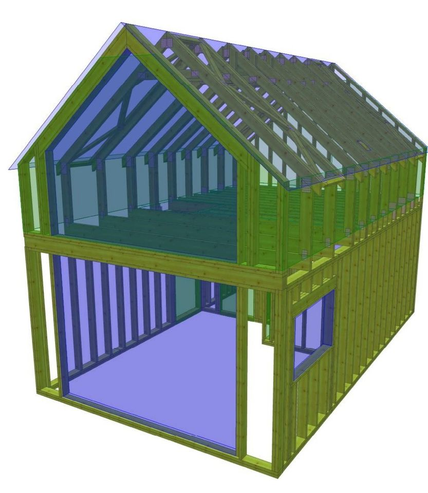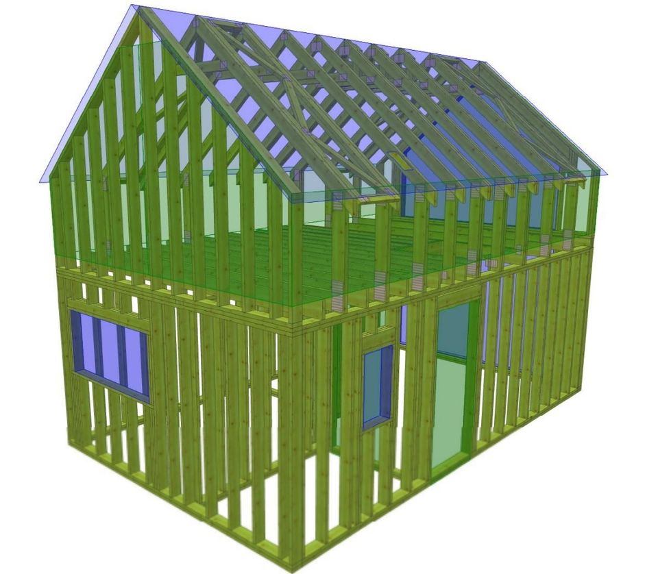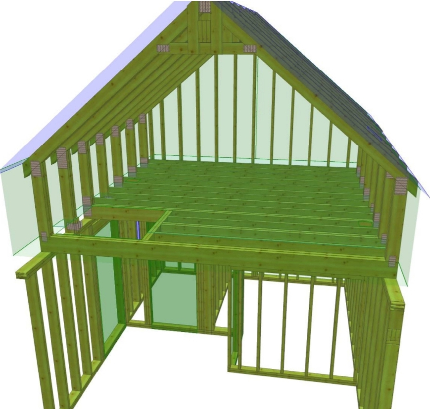 Prefabrykowana konstrukcja domku szkieletowego parterowego z nieużytkowym poddaszem (strych) o wymiarach 5x7 m