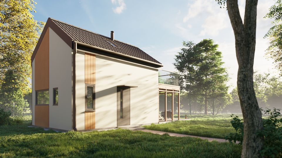 Domek ciepły całoroczny (letniskowy / rekreacyjny / wypoczynkowy) z antresolą na zgłoszenie o powierzchni zabudowy 35 m2